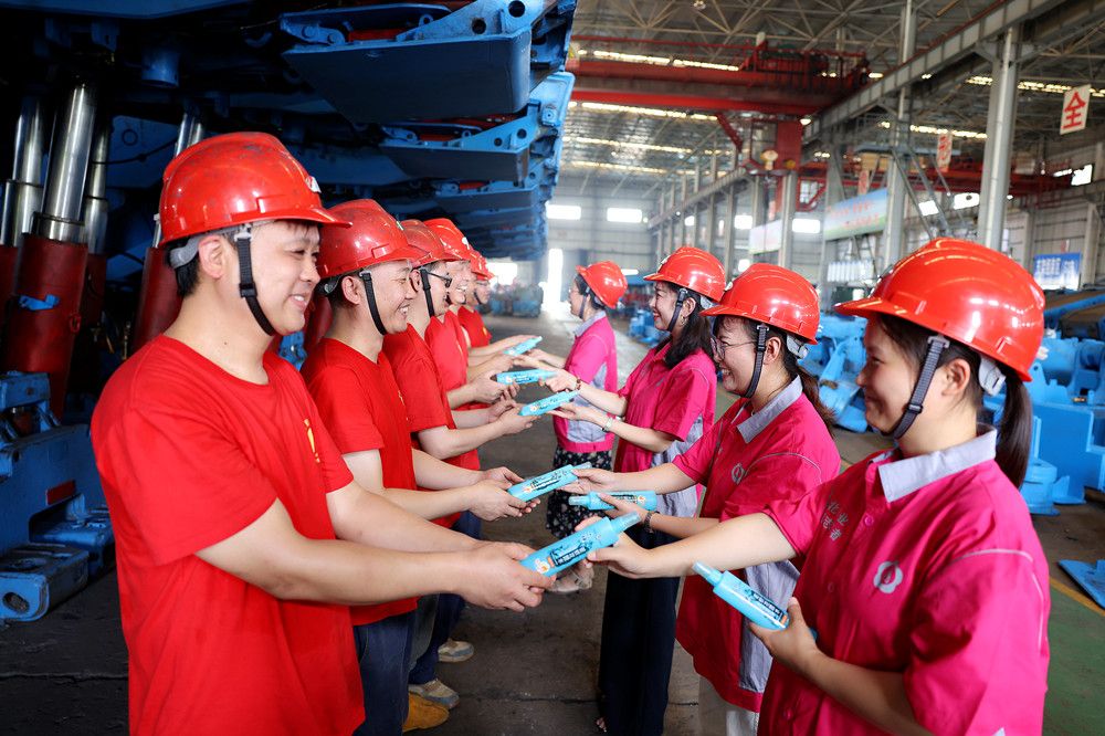时值盛夏,淮北地区持续遭遇高温“烤”验,骄阳似火,热浪袭人,生产装备分公司组织女工协安员深入各生产车间,为坚守岗位的一线职工送去精心准备的绿豆汤、花露水、毛巾等防暑降温物品,在炎炎夏日为职工撑起一片“绿荫”。(撰稿:赵德强 审核:任建忠)