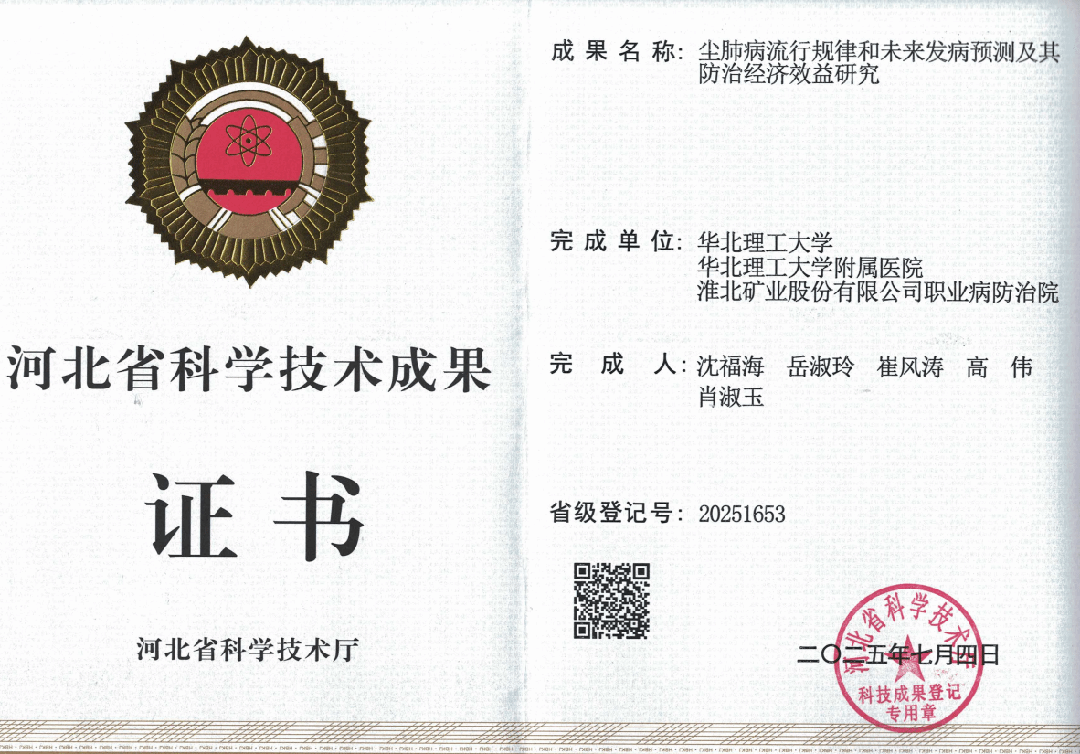 近日,从河北省科学技术厅传来好消息,相王健康下属职防院参与的科研项目“尘肺病流行规律和未来发病预测及其防治经济效益研究”喜获河北省科学技术成果奖,充分展现了公司的科技创新能力和水平,也提升了公司的品牌影响力。
