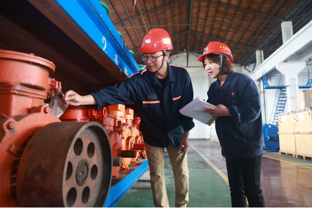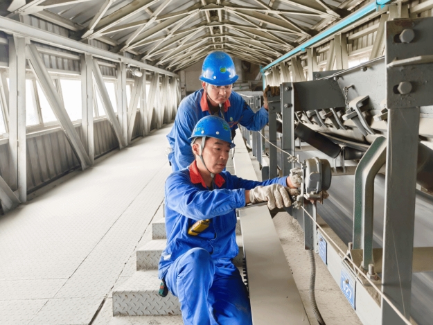 在喂料皮带机现场,淮北矿业集团2024年度劳动模范张明飞正带领徒弟对属地带式输送机进行安全排查。(撰稿:冯慧、张洋洋 审核:王士峰)