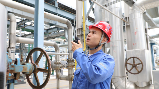 安全管理部尹汉武,正在现场巡检,为安全生产保驾护航。