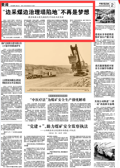 据介绍,该技术在电厂粉煤灰无害化处置,建(构)筑物、水资源和可耕地保护,煤炭资源的高效开采方面,取得了技术突破,是煤炭充填开采技术中充填成本低、开采效率高、水资源和建(构)筑物(可耕地)保护效果好的一种绿色采煤方法,填补了国内外空白,达到国际领先水平。
