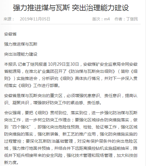 《中国煤炭报》:强力推进煤与瓦斯突出治理能力建设