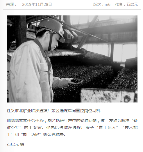 《中国煤炭报》:淮北矿业集团临涣选煤厂解决“疑难杂症”土专家