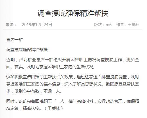 《中国煤炭报》:淮北矿业集团袁店一矿调查摸底确保精准帮扶