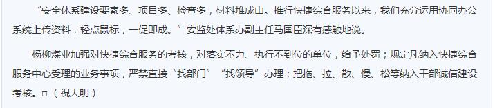 《中国矿业报》:淮北矿业集团杨柳煤业用活快捷综合服务平台