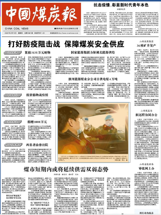 来源:《中国煤炭报》 2020年2月13日 1版头条