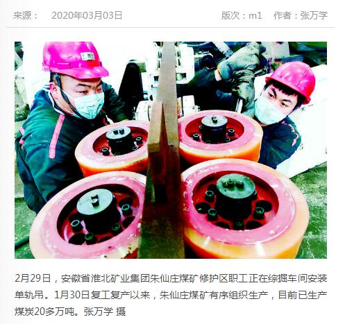 《中国煤炭报》:淮北矿业集团朱仙庄矿复产保供