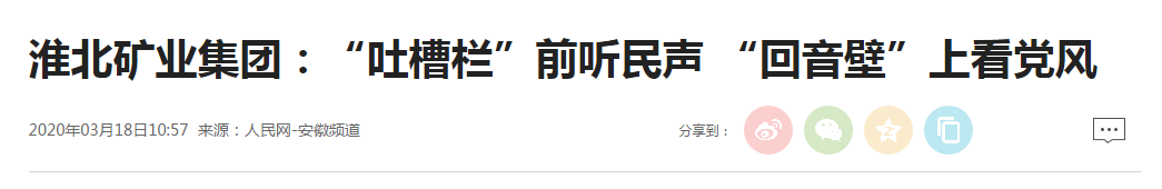 “广开言路,吐槽栏前听民声;求真务实,回音壁上看党风”。春意盎然的三月,当你来到淮北矿业集团袁店二矿,办公楼前这几十个大红雕刻字格外醒目。