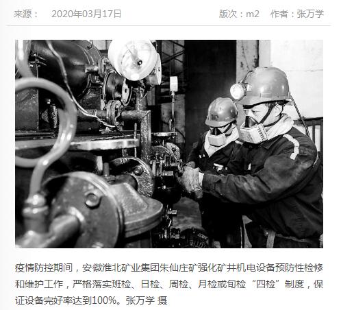 《中国煤炭报》:淮北矿业集团朱仙庄矿防疫情保安全生产