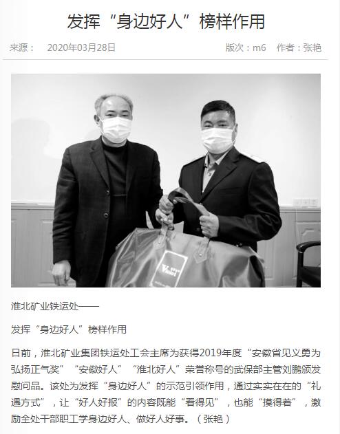 《中国煤炭报》:淮北矿业集团铁运处发挥“身边好人”榜样作用