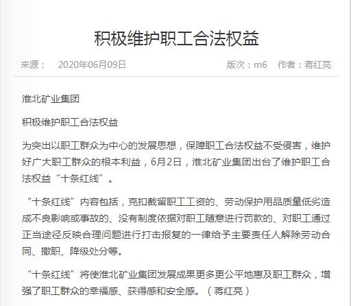 《中国煤炭报》:淮北矿业集团积极维护职工合法权益