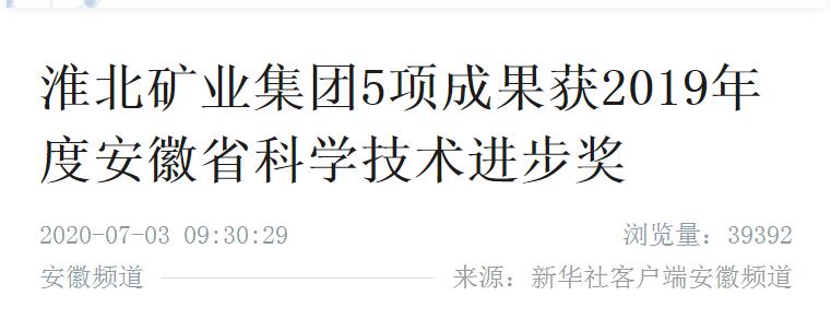 日前,从安徽省科学技术奖励大会上传来喜讯,淮北矿业集团及所属子公司5项科技成果获奖。