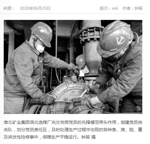 《中国煤炭报》:淮北矿业集团涡北选煤厂发挥党员先锋模范作用