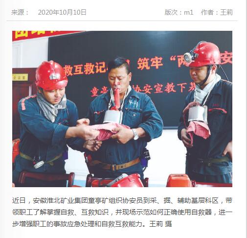 《中国煤炭报》:淮北矿业集团童亭矿开展正确使用自救器培训