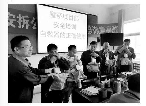 日前,安徽淮北矿业集团综采安拆分公司为深刻吸取重庆能源松藻煤矿“9·27”事故教训,举办了正确使用自救器专题培训,要求井下安拆职工人人都会正确使用自救器,以应对突发险情。(程磊 付桂利 摄)