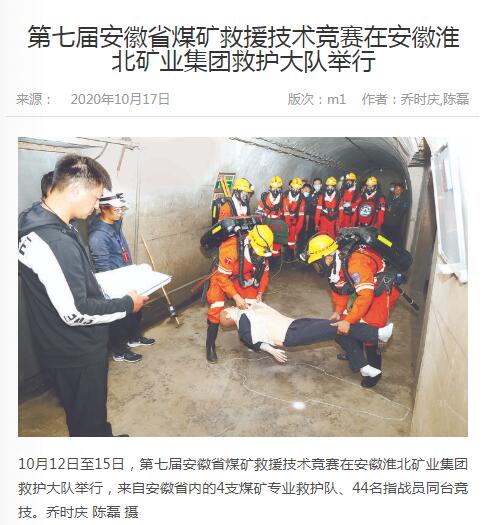 《中国煤炭报》:第七届安徽省煤矿救援技术竞赛在淮北矿业集团救护大队举行