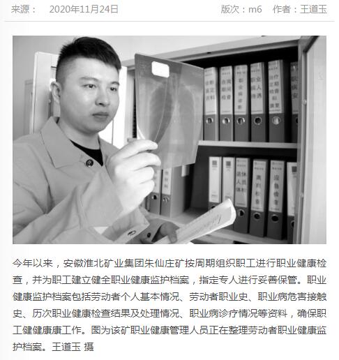 《中国煤炭报》:淮北矿业集团朱仙庄矿按周期组织职工职业健康检查