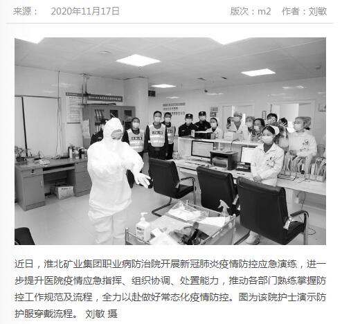 《中国煤炭报》:淮北矿业集团职业病防治院开展新冠肺炎疫情防控应急演练