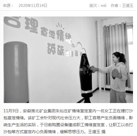 《中国煤炭报》:淮北矿业集团朱仙庄矿情绪宣泄室缓解职工思想压力