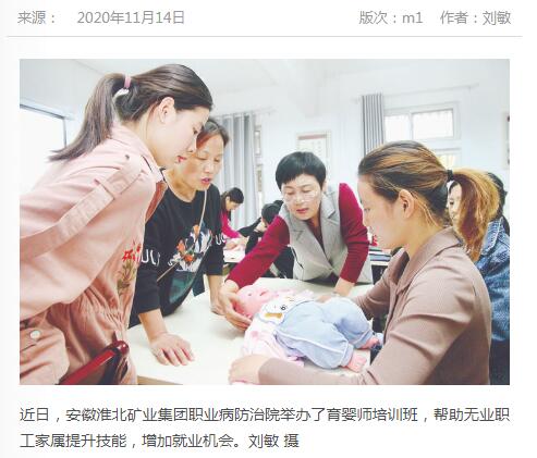 《中国煤炭报》:淮北矿业集团职业病防治院帮助无业职工家属提升技能