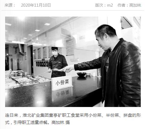 《中国煤炭报》:淮北矿业集团童亭矿引导职工适量点餐