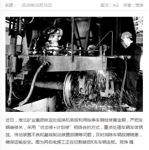 《中国煤炭报》:淮北矿业集团铁运处严把检修关保运输安全