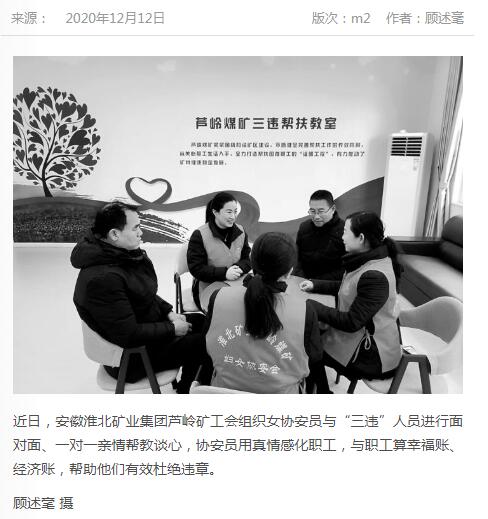 《中国煤炭报》:淮北矿业集团芦岭矿工会“三违”帮教助安全