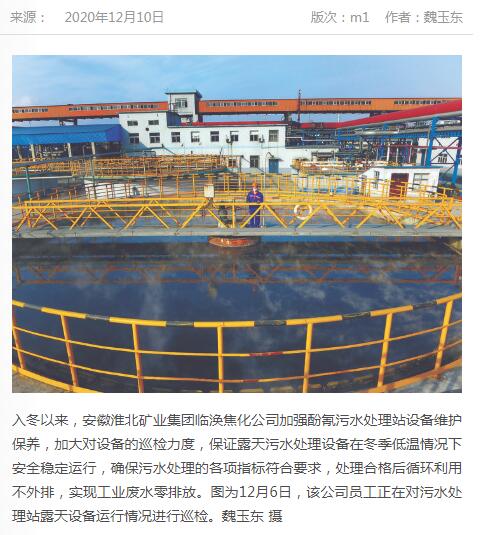 《中国煤炭报》:淮北矿业集团临涣焦化公司工业废水零排放