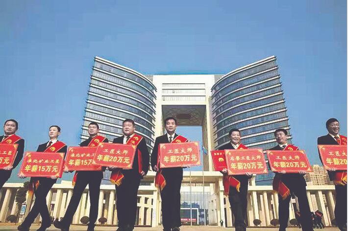 扣宏卫(中)被评为淮北矿业集团“工匠大师”