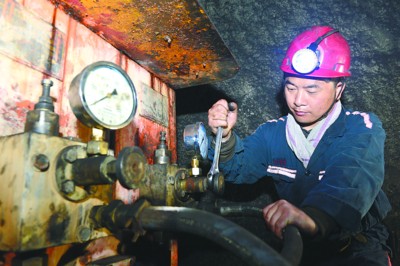 4月26日,煤机工王忠才在百米井下检修煤机等设备。