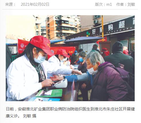 《中国煤炭报》:淮北矿业集团职业病防治院组织开展社区健康义诊活动