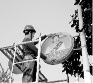 近日,安徽淮北矿业集团临涣焦化公司厂区主干道明星大道上,悬挂起该公司先进人物的“明星灯箱”。