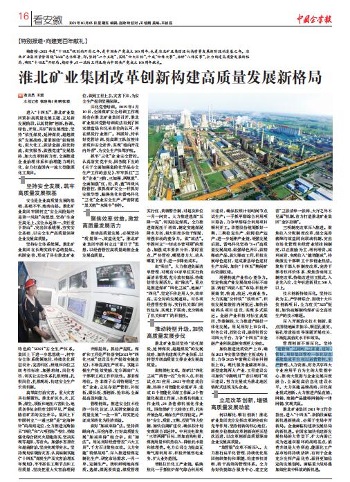 《中国企业报》:淮北矿业集团改革创新构建高质量发展新格局