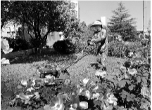 安徽淮北矿业集团朱仙庄矿绿化班由10名职工组成,他们承担着全矿花草树木的种植、修剪等工作,他们被职工亲切地称为“绿色矿山守护者”。图为绿化班职工在修剪草坪。王道玉 摄