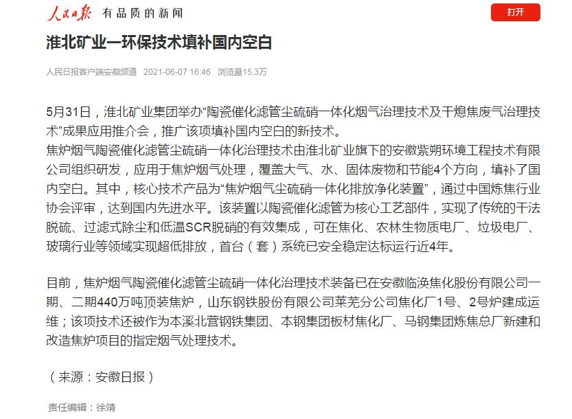 《人民日报》:淮北矿业一环保技术填补国内空白