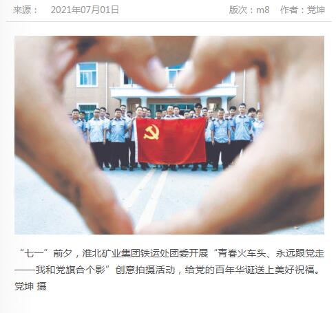 《中国煤炭报》:淮北矿业集团铁运处开展“我和党旗合个影”创意拍摄活动