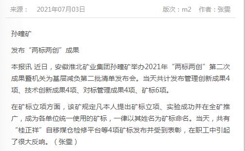 《中国煤炭报》:淮北矿业集团孙疃矿发布“两标两创”成果