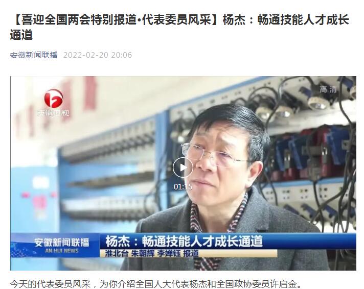 《安徽新闻联播》:杨杰 畅通技能人才成长通道