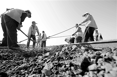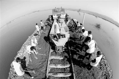 又是一年雨季“三防”。安徽淮北矿业集团铁运处朱仙庄至王桥铁路专用线上,朱仙庄领工区全体职工在对塌陷区段线路进行集中施工抢修。
