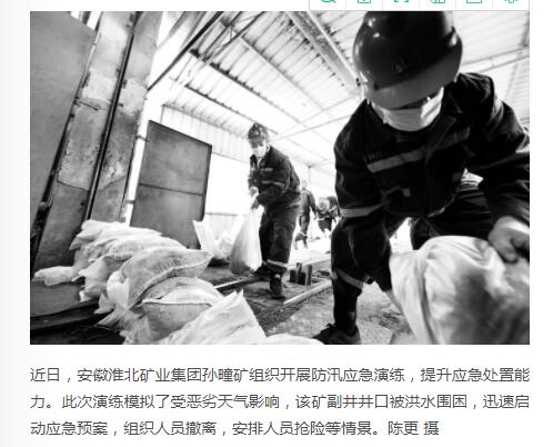 《中国煤炭报》:淮北矿业集团孙疃矿组织开展防汛应急演练