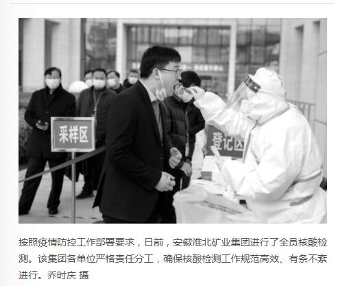 《中国煤炭报》:淮北矿业集团进行全员核酸检测
