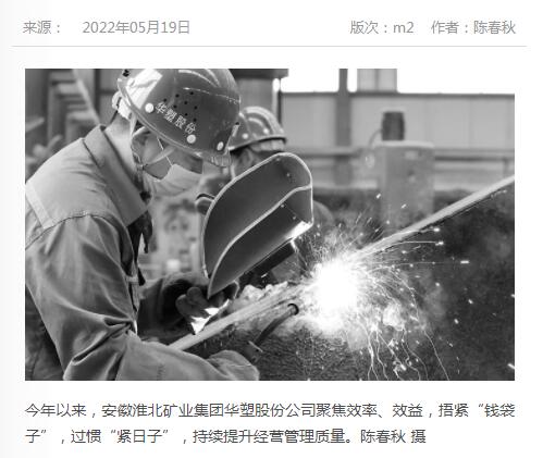 《中国煤炭报》:淮北矿业集团华塑股份公司过惯“紧日子提升经营管理质量