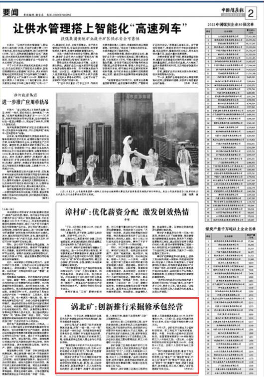 淮北矿业集团涡北矿创新推行采掘修承包经营