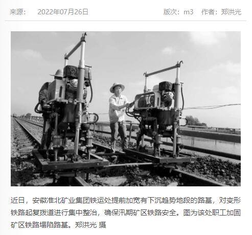 《中国煤炭报》:淮北矿业集团铁运处加强铁路整治确保汛期安全