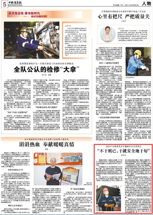 《中国煤炭报》:淮北矿业集团朱庄矿爆破队队长周桃生“不干则已,干就安全地干好”