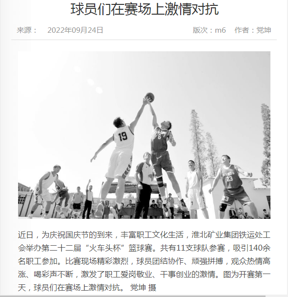 《中国煤炭报》:淮北矿业集团铁运处举办“火车头杯”篮球赛