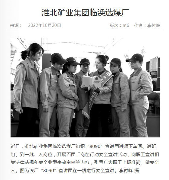 《中国煤炭报》:淮北矿业集团临涣选煤厂“8090”宣讲团开展安全宣讲