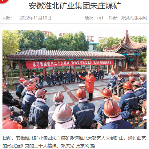《中国煤炭报》:淮北矿业集团朱庄煤矿以曲艺形式宣讲党的二十大精神