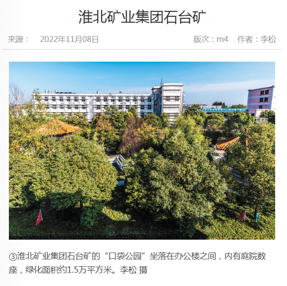 《中国煤炭报》:淮北矿业集团石台矿的“口袋公园”