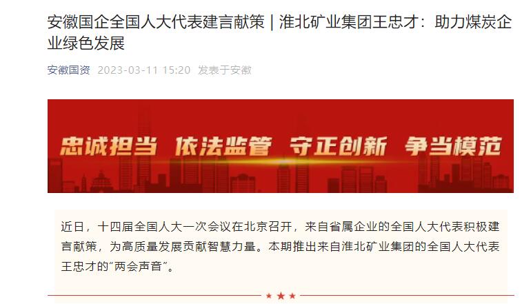 《安徽国资》:安徽国企全国人大代表建言献策 | 淮北矿业集团王忠才:助力煤炭企业绿色发展